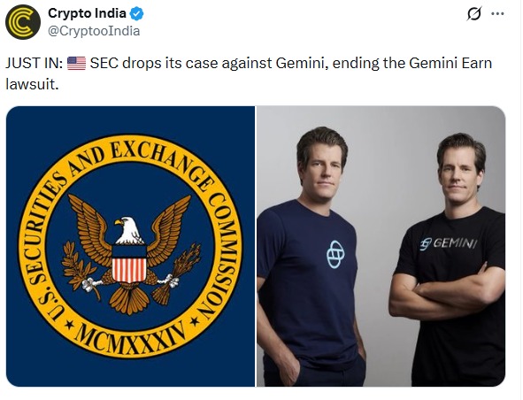 美国证券交易委员会(SEC)正式撤销了对Gemini Trust Company长达数年的执法案件,为这起因2022年加密货币市场崩盘而备受关注的诉讼案之一画上了监管的句号。他美国证券交易委员会驳回了针对Gemini公司的诉讼这项公告最终为这场持续三年的法律斗争画上了监管上的句号。