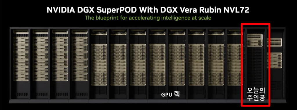 今日之星:黑色机架式 NVIDIA ICMS(推理上下文内存存储)。图片来源:NVIDIA首席执行官黄仁勋指着的是VeraRubin人工智能计算平台一角的一个黑色机架。这个机架,也就是我们今天故事的主角,里面存放着海量的存储空间。