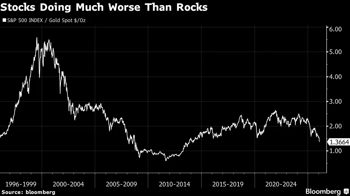 长期关注我文章的人都知道,我最喜欢的图表之一就是标普500指数与黄金的简单比率。我喜欢它的原因,除了这种关系直观易懂之外,还在于它与国家历史转折点在经验上高度吻合。