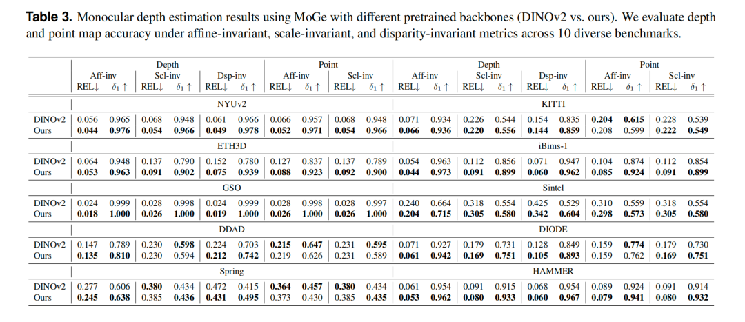 即使在推理时只给它一张单目RGB图片(没有任何深度输入),它也能凭借学到的先验知识,估算出相当准确的深度图,展现出强大的泛化能力。
