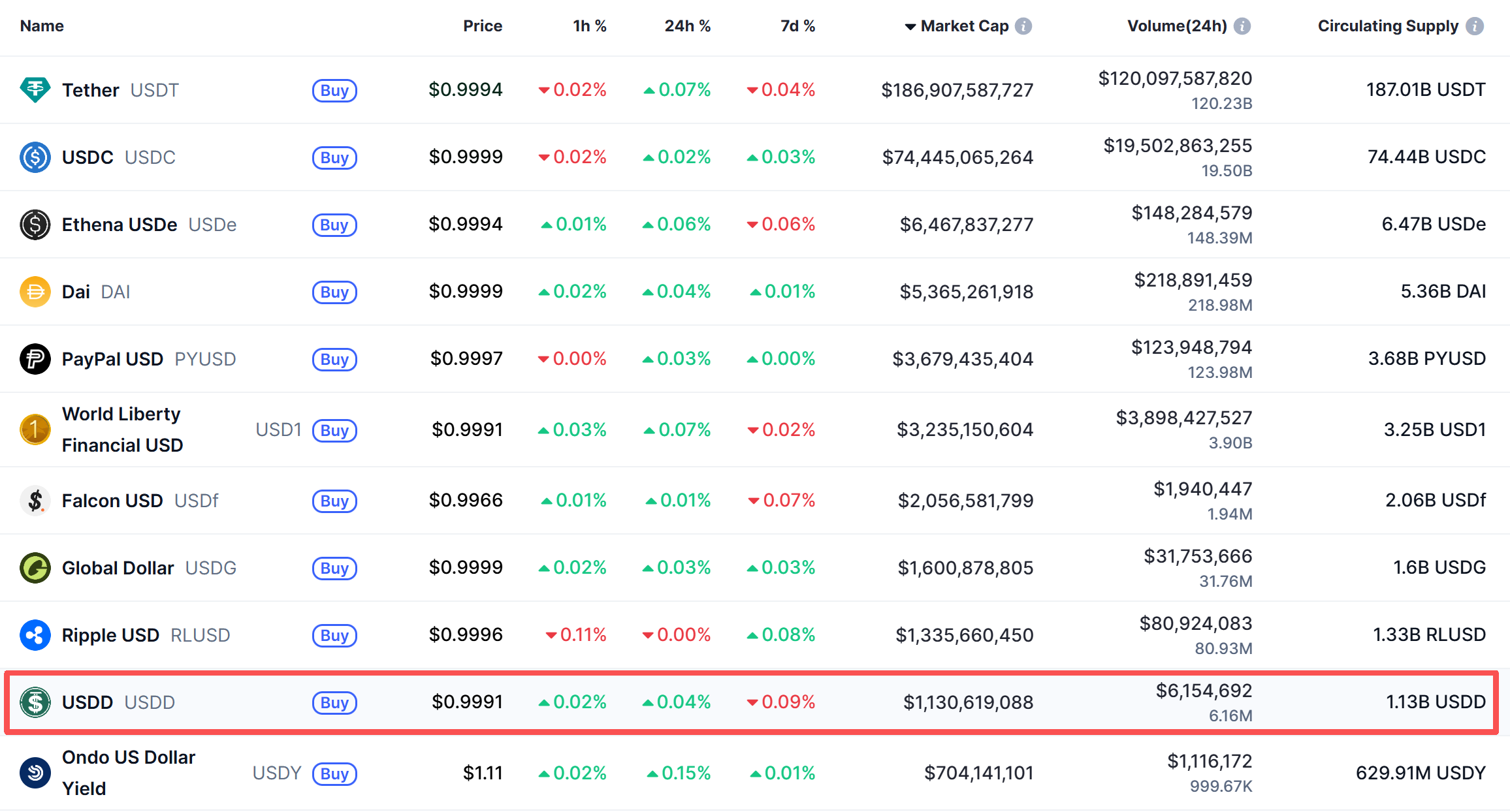 这个数字放在稳定币 3000 亿美元市场规模里,或许不算惊天动地,但对于 USDD 而言,很大程度上代表着其开始坐进了稳定币核心玩家的牌桌。