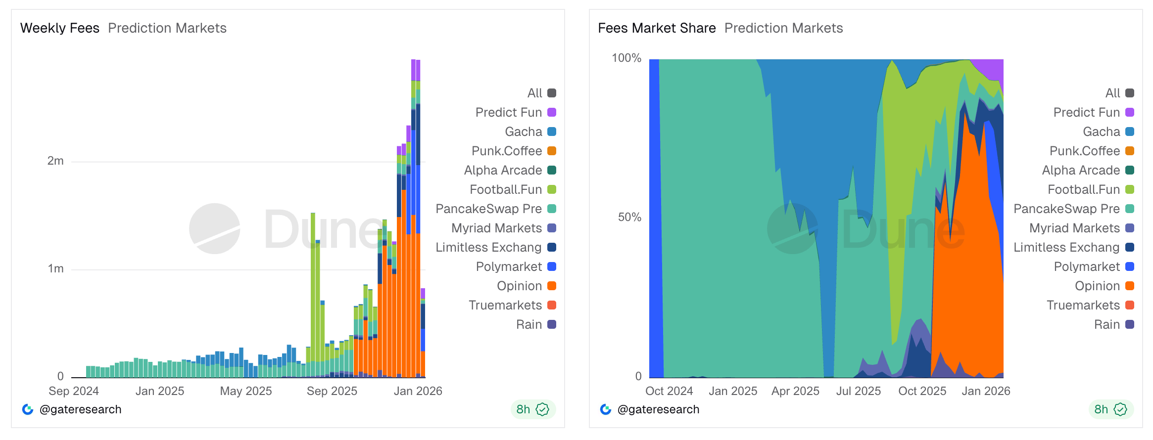 首先来看最直观的手续费收入规模。根据 Gate Research 在 Dune 上所编绘的数据,自开始征收该项费用以来,Polymarket 已累积收取了约 219 万美元的手续费收入,平均每周可收取约 73 万美元 —— 以此数据去静态推算,在相关市场交易量及交易活动结构保持不变的情况下,预计每年可为 Polymarket 带来约 3800 万美元的收入。