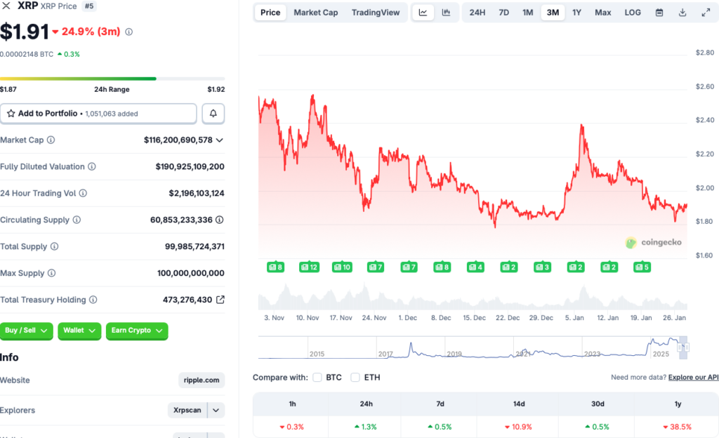 然而,鉴于当前的市场形势,XRP 实现超过千倍的涨幅可能并非易事。过去几个月,加密货币市场持续低迷。此外,市场参与者似乎正在将资金转移到黄金和白银等避险资产。宏观经济担忧和地缘政治紧张局势也给加密货币市场带来了进一步的阻力。美联储宣布今年降息可能会提振投资者情绪。然而,我们无法预测下一次降息何时到来。