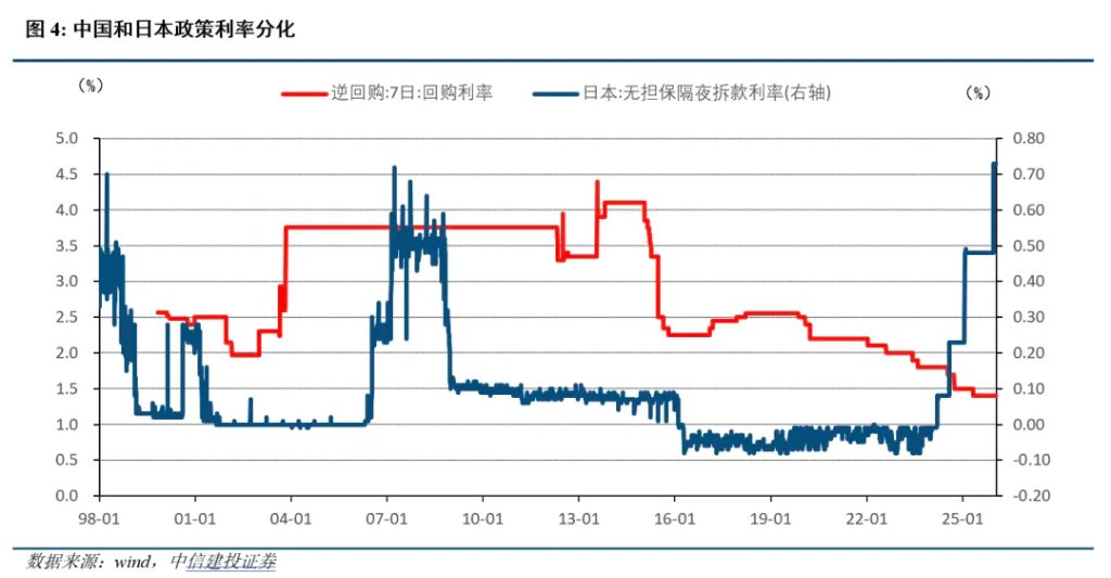 中日利率逆转,全球资金反而更青睐低利率的中国,因为影响资金流向的除了利率,还有汇率。日本是“坏”通胀,利率上行但汇率贬值;中国是“好”通胀,利率偏低但汇率强健。