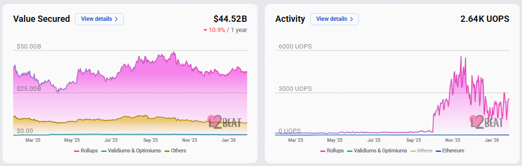 鉴于首先扩展主链的复杂性,Roll Up 被视为一种可行的选择。截至 2026 年 1 月底,以太坊二层(L2)管理的资产价值超过 410 亿美元。在这个快速增长的领域,索尼的 Soneium 是主要参与者之一。