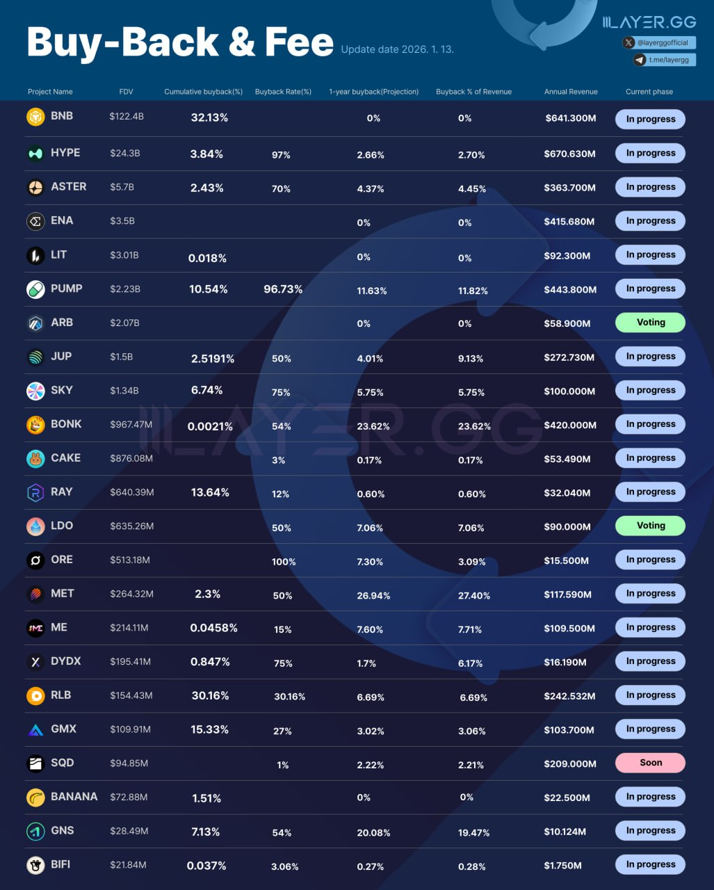 Aave 实施了代币回购机制。Optimism 启动了回购计划。
