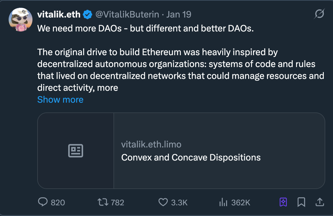 正如 Vitalik 所说:我们需要更多的 DAO,但需要的是不同且更好的 DAO。