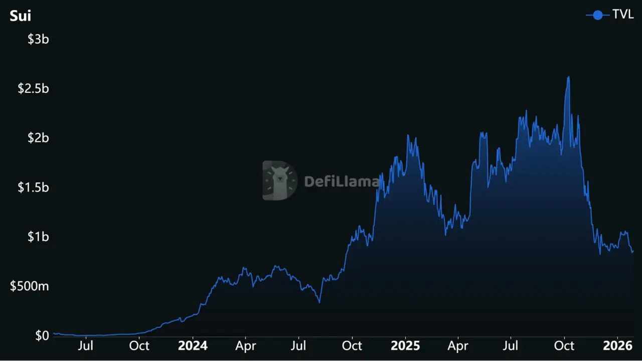 SUI 进入 2026 年盘整期,年初价格波动剧烈,目前交易价格在 1.26 美元至 1.30 美元之间。由于该代币拥有关键支撑位,其价格预测仍备受关注。SUI 的总锁定价值超过 10 亿美元,且去中心化交易所的活跃度稳定,因此,SUI 持续受到交易者的关注,他们希望从中寻找资金未来流向的信号,尤其是那些关注顶级加密货币的交易者。