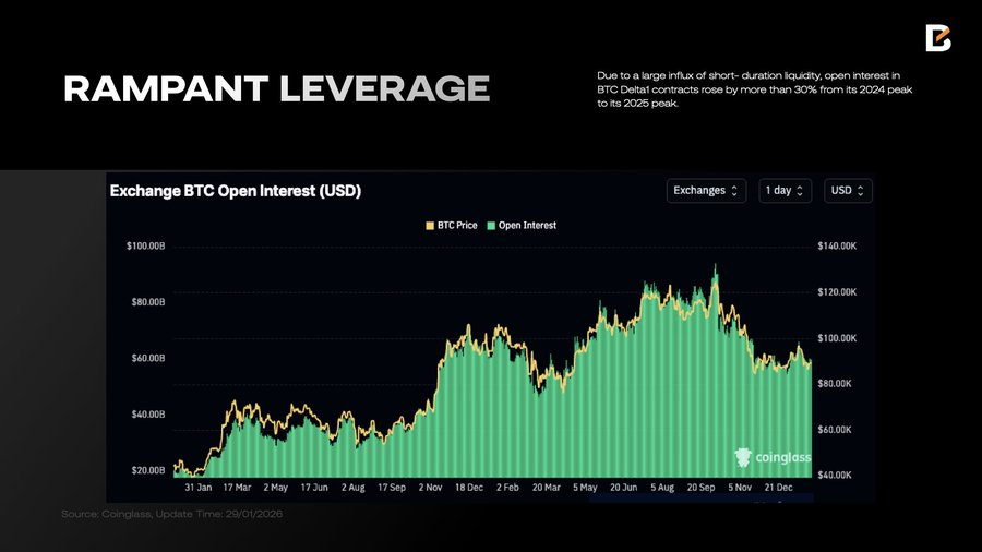 T-bill 占比上升的另一个直接后果是:流动性规模的变动不再稳定。过度依赖短期 T-bill 意味着更频繁的展期和更短的平均流动性“寿命”。在整体杠杆已突破历史峰值的当下,频繁且剧烈的流动性波动削弱了市场的抗冲击能力 — — 为潜在的连锁清算埋下了伏笔。