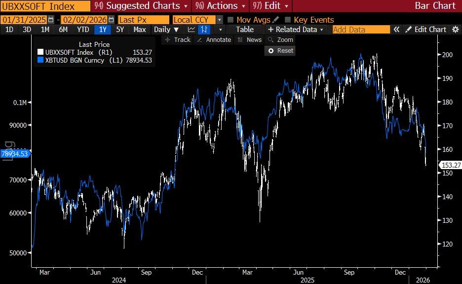 黄金的上涨基本上抽走了系统中本可能流入比特币和 SaaS 市场的边际流动性,没有足够的流动性来支撑这些资产,所以高风险资产受到冲击下跌,真没辙了。