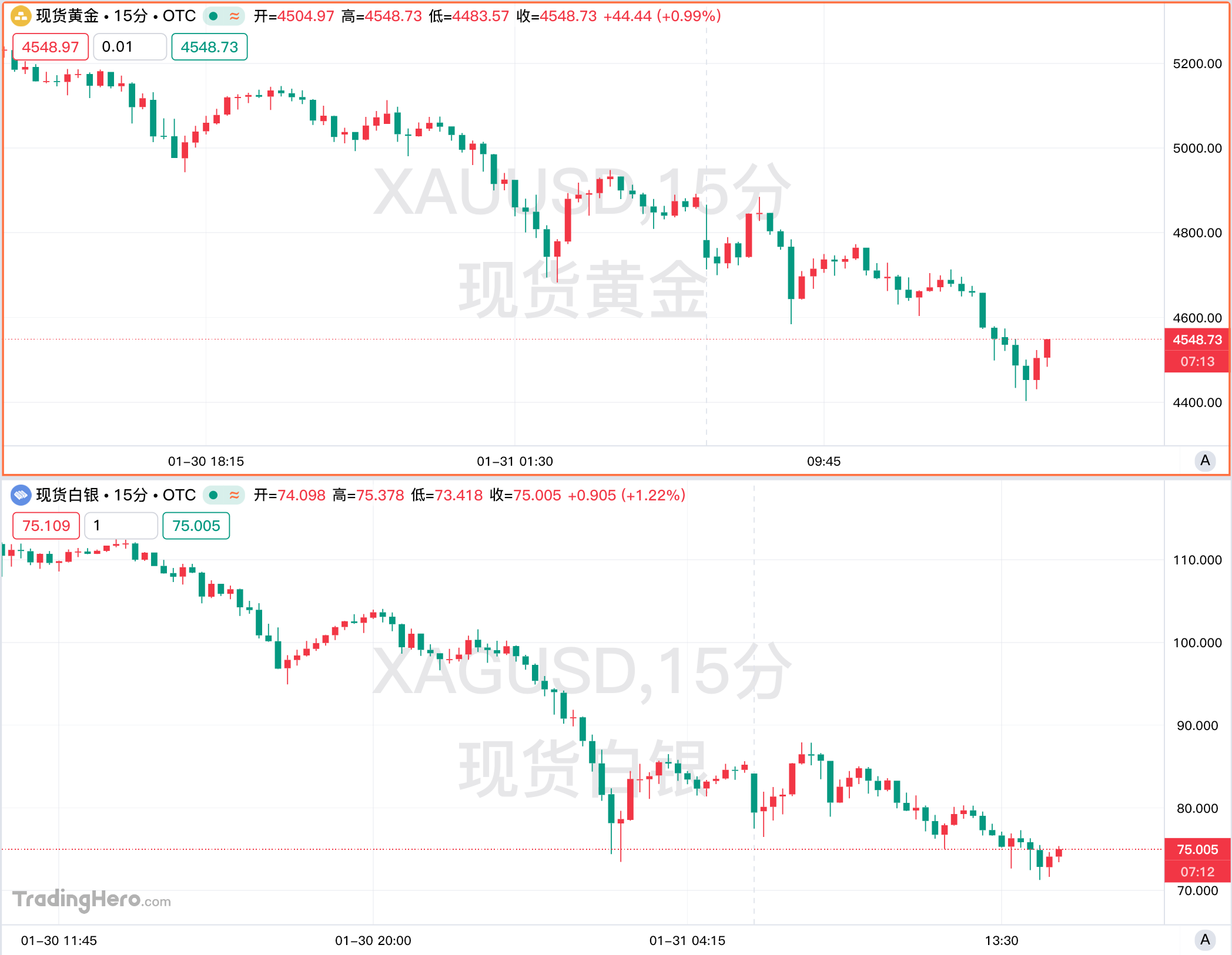 贵金属的史诗级暴跌噩梦延续到新的一周。周一,现货金银暴跌,现货黄金一度逼近4400美元/盎司关口;现货白银一度失守72美元/盎司,接近抹去年内涨幅,日内重挫逾15%。截至发稿,金银跌幅均有所缩窄。