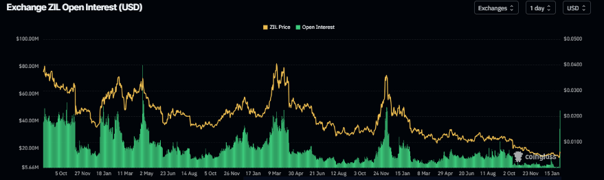 CoinGlass数据显示,周二Zilliqa期货在交易所的未平仓合约(OI)达到4776万美元,高于周一的572万美元,创下自2024年12月9日以来的最高水平。未平仓合约的增加意味着有新的资金或额外的资金进入市场,以及新的买盘,这可能会推动当前的ZIL价格上涨。