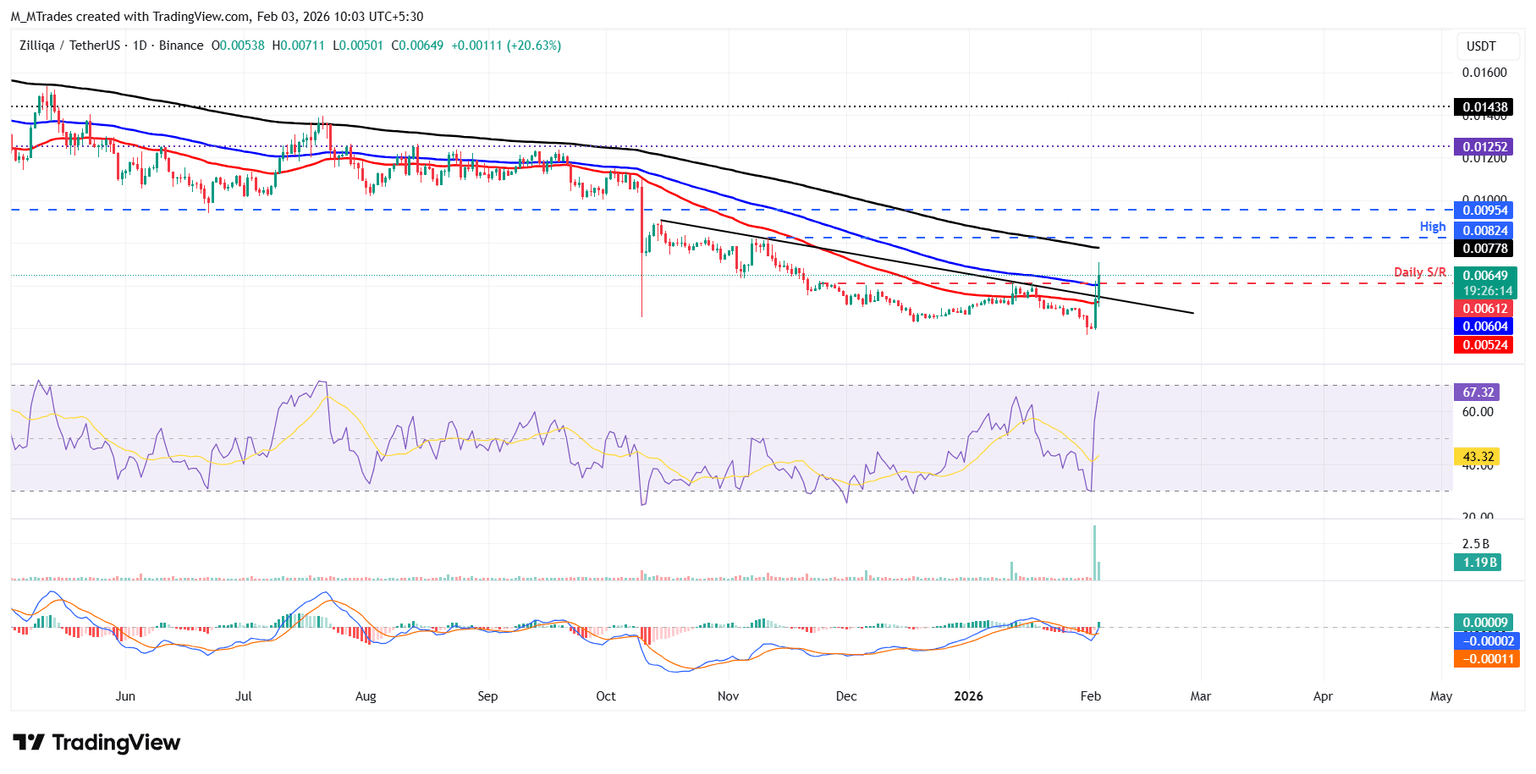 Zilliqa (ZIL) 价格 ZIL延续涨势,周二上涨超过20%,至0.006美元,此前一天已飙升近34%。尽管加密货币市场整体疲软,但本周即将进行的坎昆升级提振了投资者情绪。在交易活跃度上升和衍生品指标改善的支撑下,ZIL持续吸引强劲的买盘兴趣。