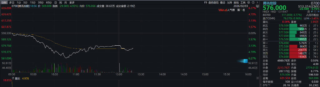 香港恒生科技指数当日早盘原本跟随外围走强,但在上午10点50分左右突然大幅跳水,跌幅一度扩大至3.37%,截至午盘跌1.31%。快手一度跌超7%,哔哩哔哩、百度、腾讯控股一度跌超6%,阿里巴巴一度跌近5%。
