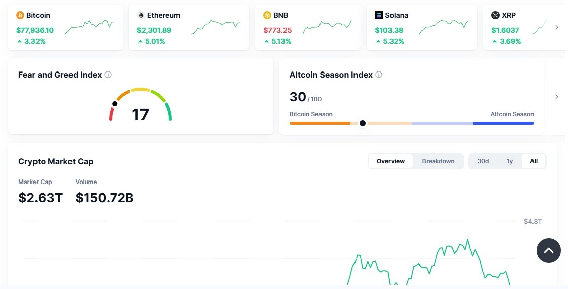今日加密货币市场走势对印美贸易协议做出了清晰而直接的反应。消息称……关税削减随着商业紧张局势的缓解,投资者对各种风险资产的信心均有所提升。加密货币总市值上涨了3.8%,达到约2.64万亿美元,这表明新的资金正在回流,而不是继续观望。这种积极情绪也体现在比特币上,其价格在过去24小时内上涨了4.31%,目前交易价格接近78,378.14美元。对许多投资者而言,贸易协议预示着全球不确定性降低,流动性状况改善,这使得加密货币如今比几天前更受投资者青睐。