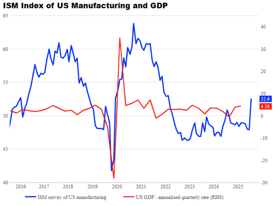 美国供应管理协会(ISM)1月份的制造业调查显示,工厂活动飙升至2022年以来的最高水平——这是一年多以来的首次扩张。新订单是推动此次增长的主要动力,同时投入品价格也在持续快速上涨。