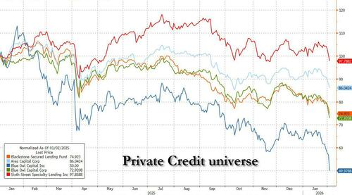 BDC是私募信贷市场重要组成部分的商业发展公司(Business Development Company,简称BDC),专门为中小型企业(通常是私有企业)提供资金,手里持有大量软件公司的债务(约占其投资组合的 16%)。而随着软件行业面临前所未有的抛售潮,BDC正面临严峻的资产减值风险。