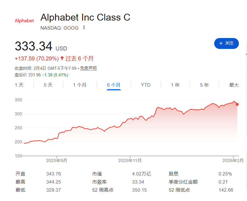 Alphabet 的逆势狂飙: 在过去三个月里,Alphabet 股价上涨了近 25%;若拉长至过去六个月,涨幅更是达到了惊人的 75%。