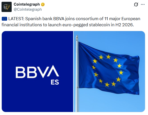 该银行联盟实力雄厚,成员包括法国巴黎银行、荷兰国际集团和意大利联合信贷银行等知名银行。随着西班牙对外银行(BBVA)的加入,该联盟规模进一步扩大。这家西班牙银行业巨头管理着超过8000亿美元的资产。这对该项目大有裨益。这意味着一旦该新币在2026年正式发行,将有更多的人和企业可以使用它。
