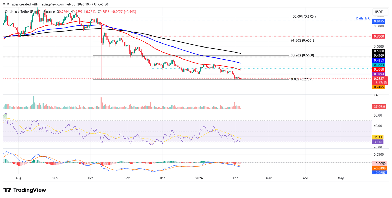 卡尔达诺卡尔达诺 (ADA) 价格回调持续,截至周四发稿时已跌破 0.29 美元,此前两个交易日连续出现两根阴线。衍生品数据显示,ADA 的走势疲软,空头头寸增加,而未平仓合约 (OI) 则持续下降,跌至 2024 年 11 月以来的低点。技术面来看,前景看跌,卡尔达诺的价格已接近 2023 年 10 月 21 日以来的最低水平。