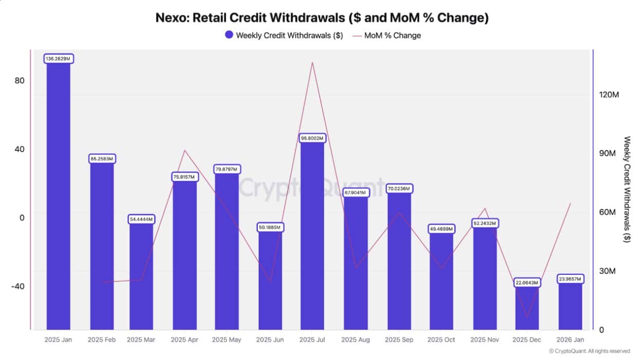 2025年1月,NEXO(NEXO)零售信贷提取额高达1.3663亿美元。这反映出在强劲的市场环境下,投资者积极运用杠杆。