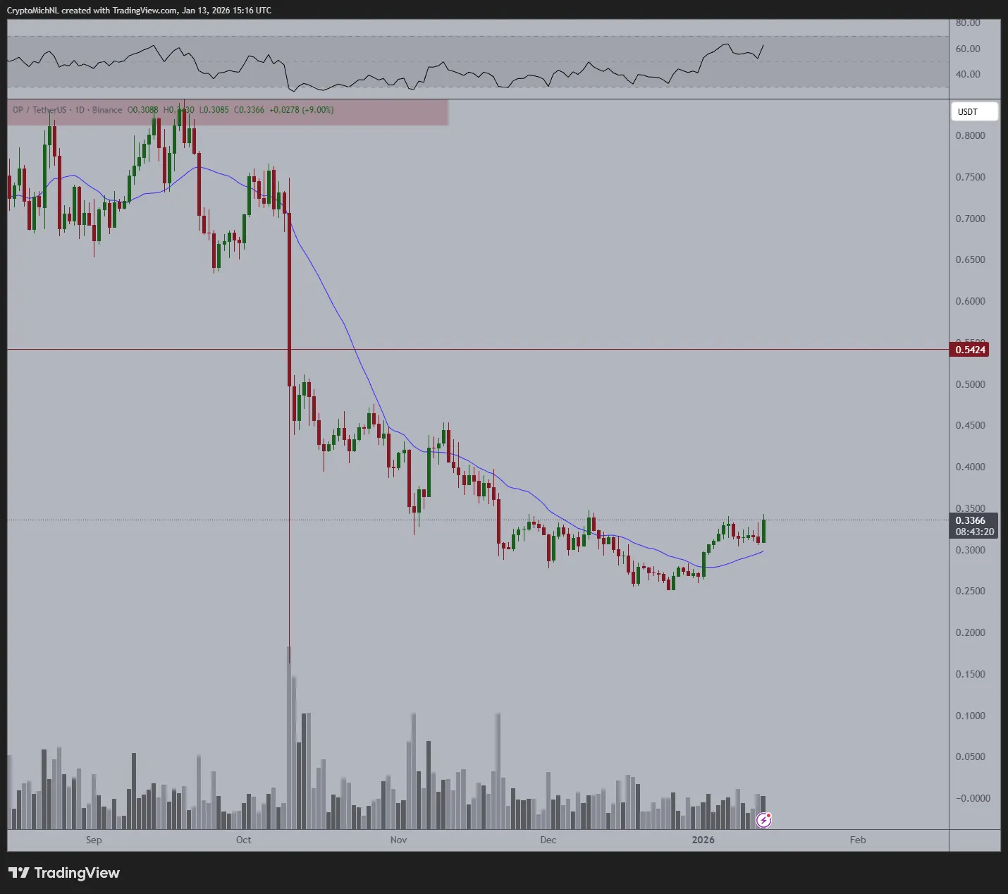 Poppe 也看好山寨币的发展趋势,特别提到了 Optimism (OP) 的价格。