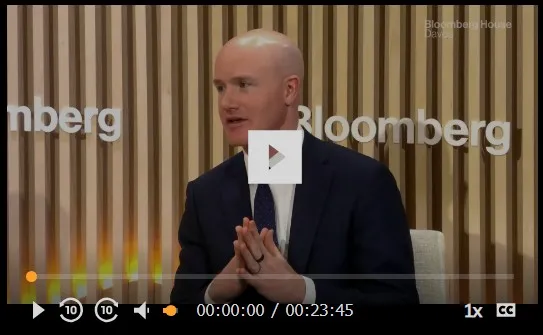 Coinbase 联合创始人兼首席执行官 Brian Armstrong 在 2026 年世界经济论坛期间,于达沃斯彭博社大厦与彭博社的 Emily Chang 讨论了特朗普支持的加密货币法案以及数字资产在扩大全球投资渠道方面的长期作用。