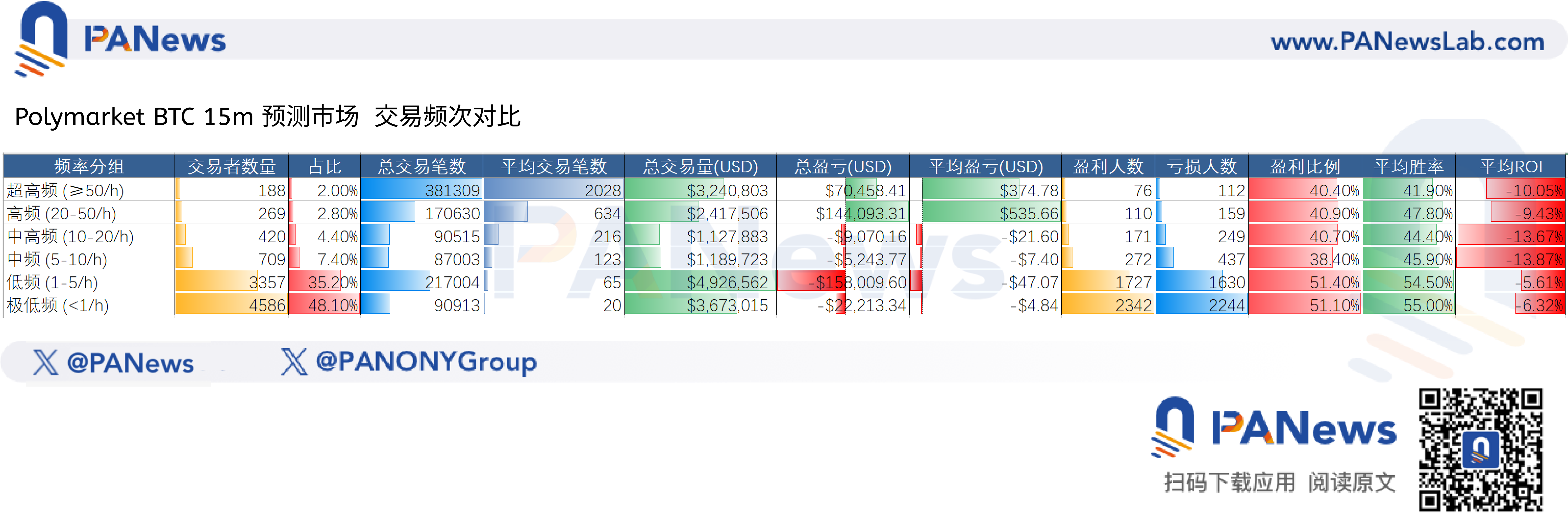 从这个角度的分析结果来看,在加密短期预测市场,目前呈现出一种机器收割真实用户的状态,手动交易的结果与高频的机器人相比面临巨大的差距。另一个角度,也算侧面印证了一个结果,那就是在预测市场通过优化算法,是能够实现超额收益的。