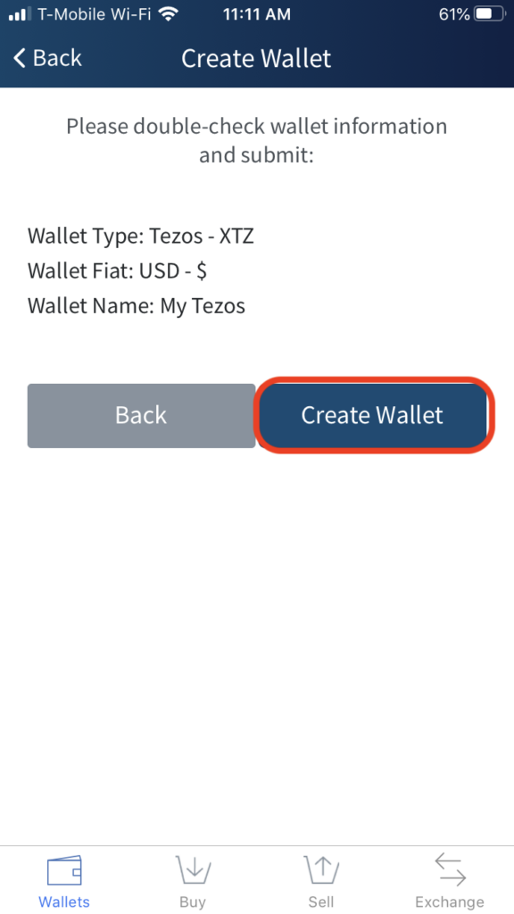 该场景检查以确保您的所有首选项都是正确的。如果需要,请点击“创建钱包”。
