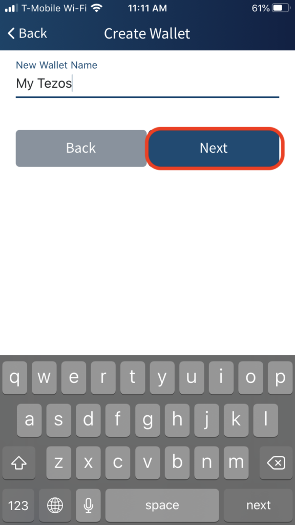 您可以随便命名钱包。完成后,点击“下一步”。