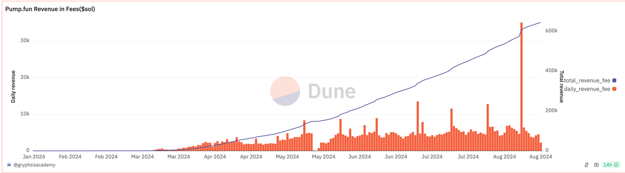 近期主流市场持续震荡,但 Memecoin 热度不断。Pump.fun 8 月 13 日协议收入再创新高,累积收入超 1 亿美元。Sun.pump 上线不久,该平台上的多个 Memecoin 市值迅速突破 100 万美元,波场链上 Gas 飙升,TRX 沉寂许久的币价也创出了近三年新高,可以说 Sun.pump 几乎凭「一己之力」带来了波场整条链的「再次繁荣」。
