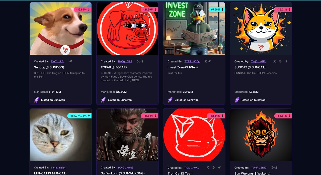 Sun.pump 是基于 Tron 发布的首个 meme 发行和交易平台。其 Beta 版本已于 8 月 13 日正式上线,迅速已与 Dex Screener、火币 HTX 和 Poloniex 等建立了战略合作关系,并和 Trondao 联合推出了价值 1000 万美元的 Meme 生态系统促进激励计划,一时间热钱涌动,火速出圈。
