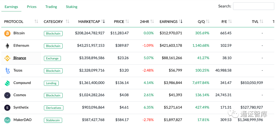 6、DeFi项目盈利/市盈率数据:https://tokenterminal.xyz