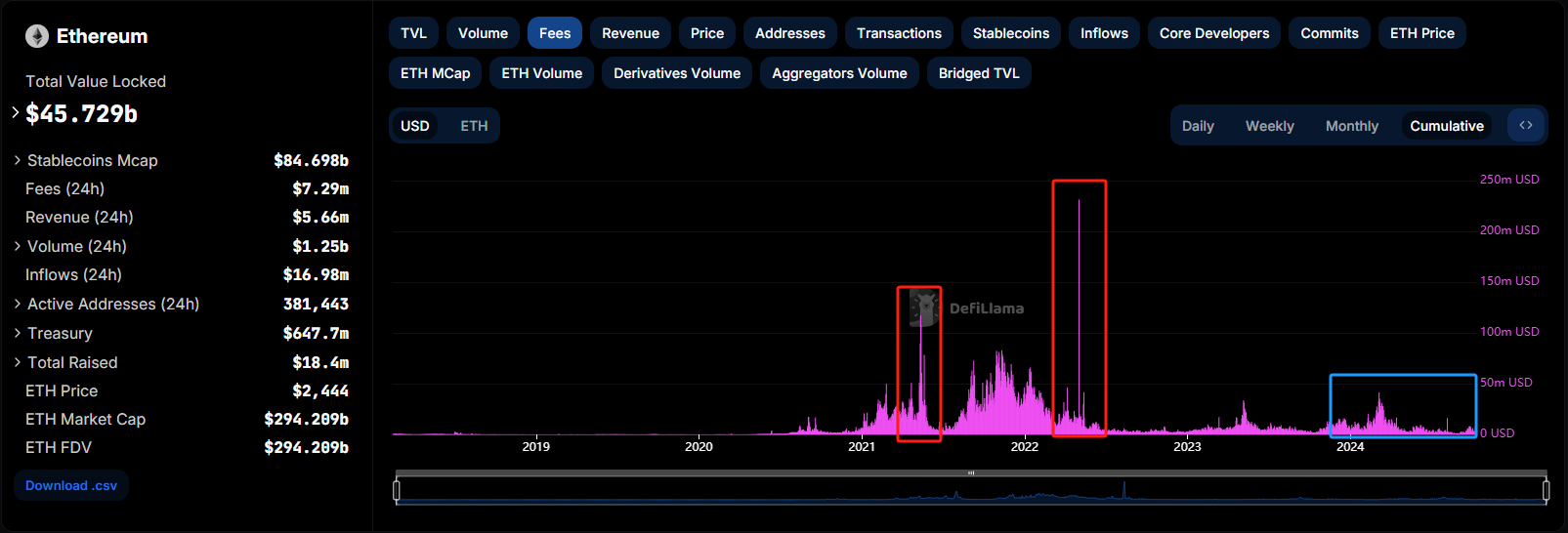 笔者认为,Solana的崛起反映了人们对以太坊扩展问题的日益不满。尽管最近进行了升级,在2021年和2022年以太坊费用高到离谱,在2024年高峰时期以太坊仍然面临拥堵,导致高额的gas费用。对于较小的开发人员和用户来说,Solana的低成本提供了一个引人注目的替代选择。此外,随着Solana的TVL不断增长,它标志着市场对其处理更复杂和更有价值应用能力的信心日益增强,但并不是抛弃以太坊的充分理由。