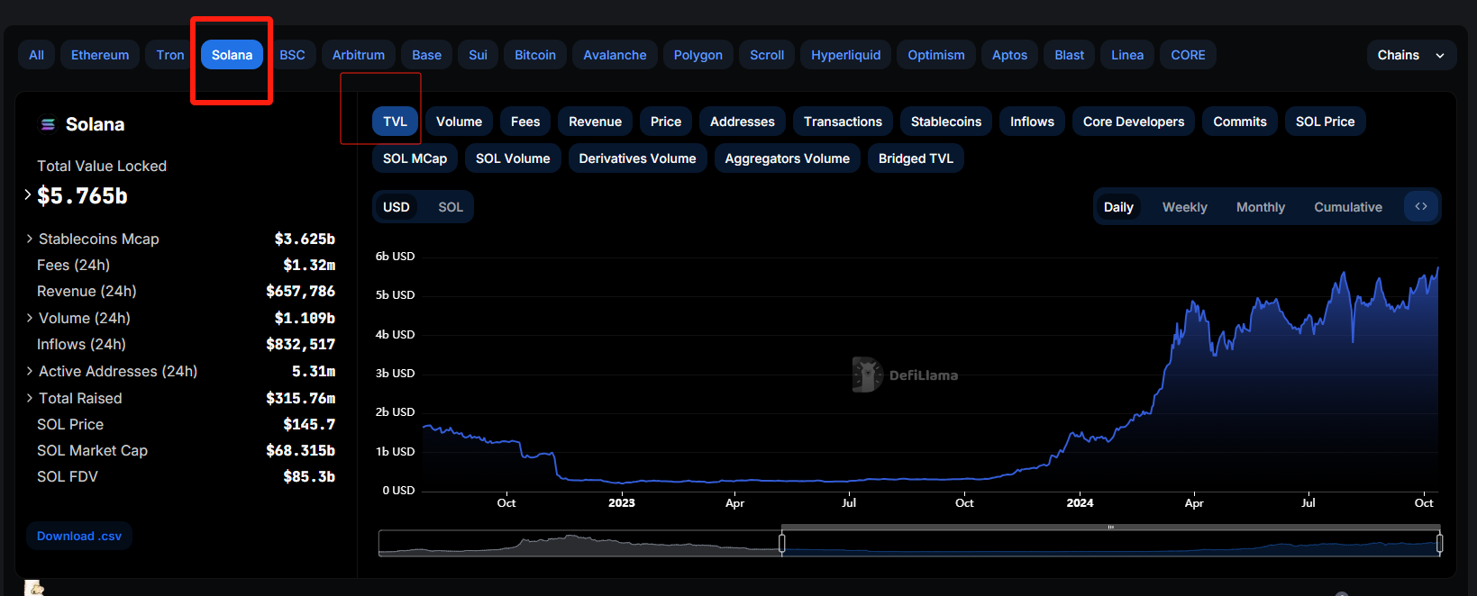 与此同时,Solana表现出令人印象深刻的上涨,最近几周飙升近25%。Solana区块链上的总价值锁定(TVL)已攀升至近60亿美元,反映出投资者的强烈信心。TVL是去中心化金融(DeFi)的一个重要指标,衡量了建立在区块链上的协议所使用的总资本。