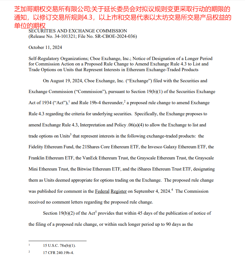 美国证券交易委员会(SEC)最新消息,再次推迟了批准以太坊ETF期权的决定。原定于2024年10月中旬作出的裁决现已推迟至12月,此举令许多以太坊支持者感到失望,在对以太坊相关产品大度的氛围下,为何针对以太坊变现出过分的谨慎态度?