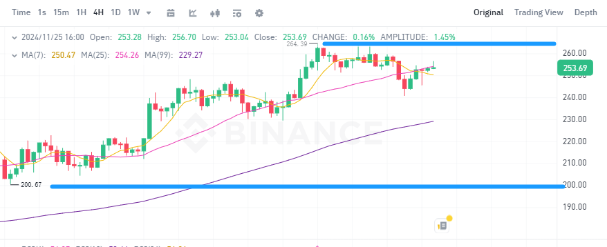 Solana:SOL 维持势头受阻,支撑位在 200 美元,阻力位在 260 美元。
