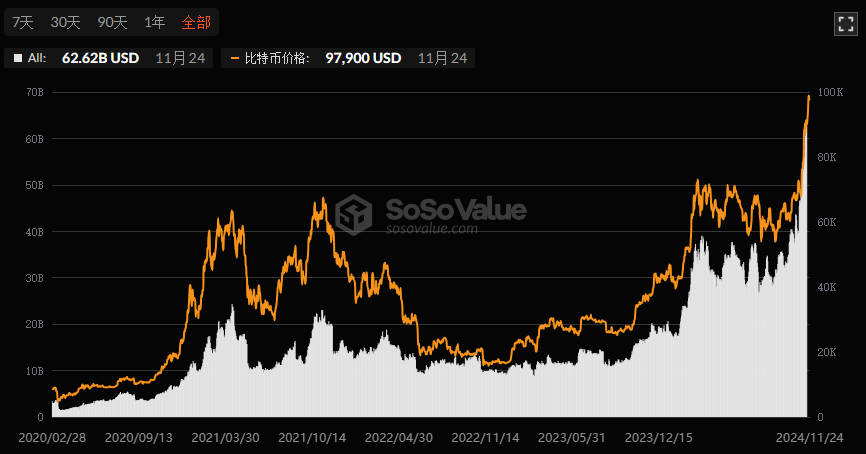 1. 机构采用:大型机构(包括资产管理公司和企业)持续增持比特币,比特币期货 ETF 的推出进一步提升了机构参与度。